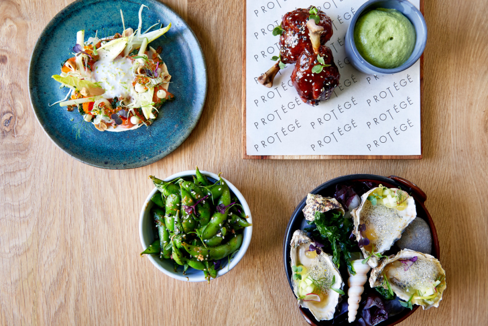 Le Quartier Français has a real trump card – its unbuttoned restaurant, Protégé, overseen by head chef Zane Soutar. It’s entirely conditioned to get you to relax: Dining is spread out across the front terrace, dining room (embellished with an open kitchen and an open bar) and back terrace. It feels airy and ample at quieter times of day and intimate and buzzy at night. On the menu of small plates to graze on, there’s a roti stuffed with spice-glazed lamb, rum braised pineapple and coriander; grass-fed beef and crispy sweetbreads in a puddle of pepper truffle cream; delicate Cape Malay seared tuna topped with kerala, curry leaf, sultana and chutney; and fantastically tender line fish with chimichurri, chorizo, smoked mussel and baby squid. Each plate places an emphasis on individual ingredients and elevated sophistication, creating exciting flavours that surprise as much as they fill you up. Cocktail lovers are spoiled with seasonal creations, as are sweet-toothed guests with a spin on a classic banoffee pie. Most of the evening footfall comes from outside guests rather than residents, which means the restaurant is often full. The addictively crunchy Korean fried chicken books out tables weeks in advance.